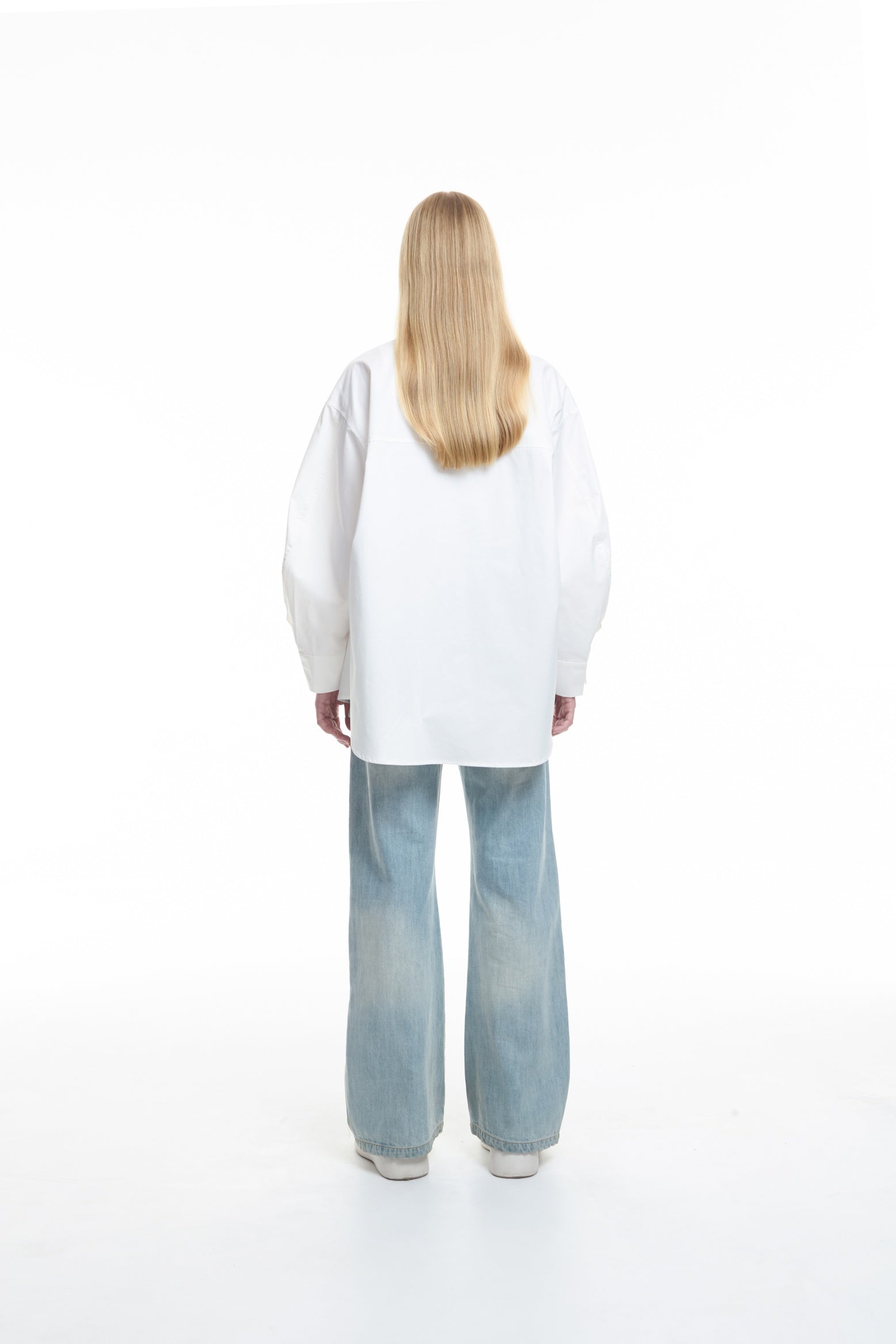 high-quality pure cotton sateen farbic, sleeves has curved panel cut, smooth feel.