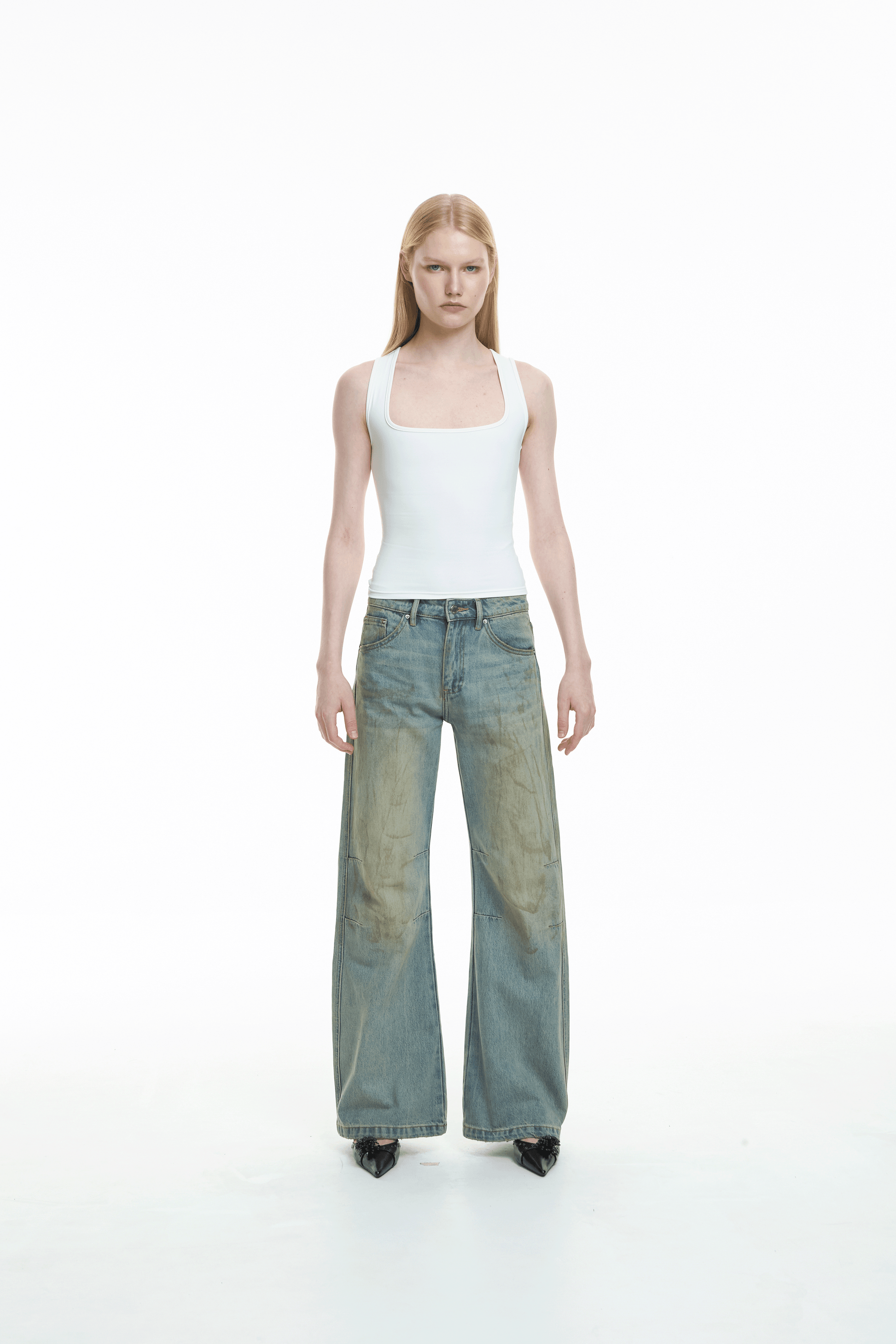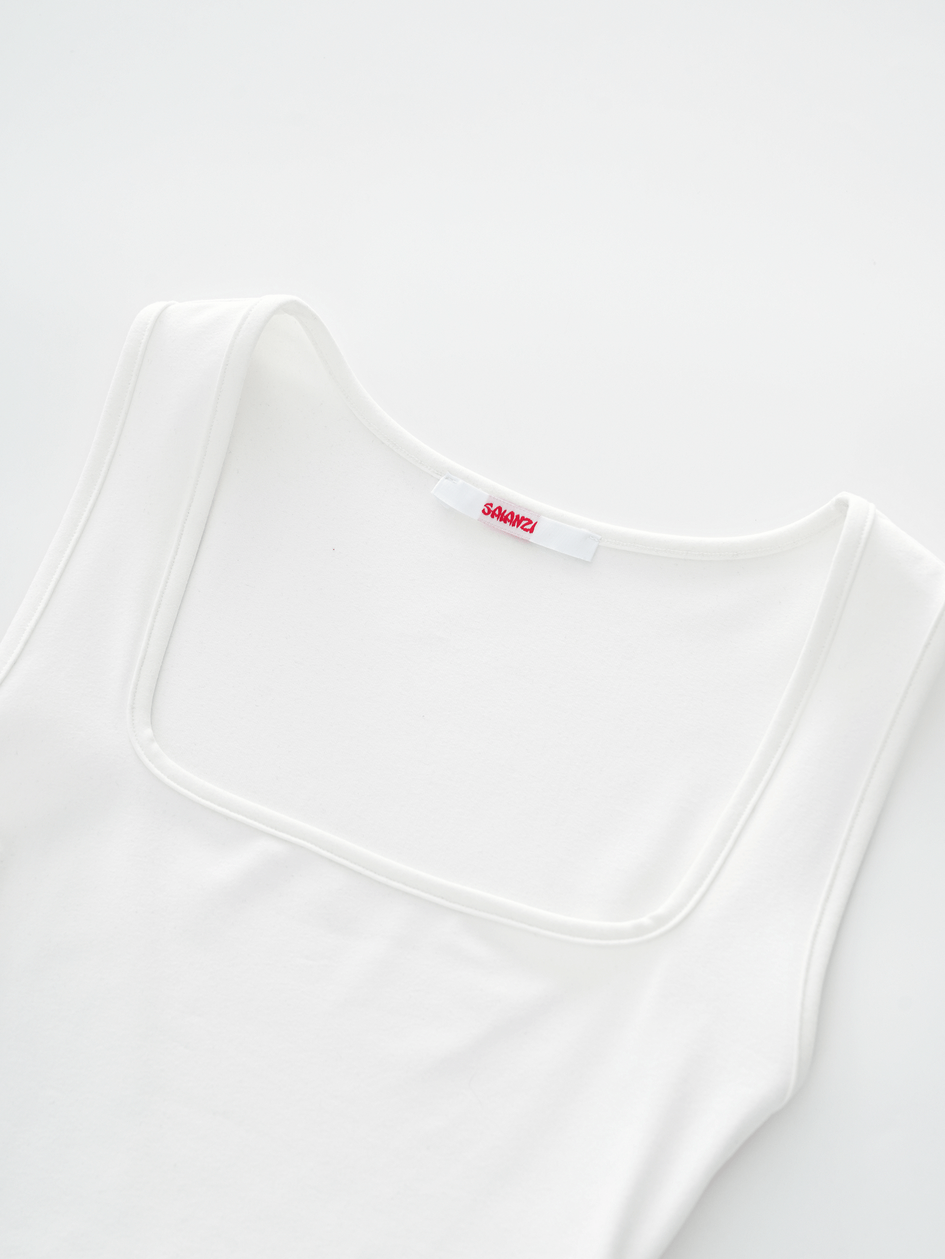 it's made from nylon fabric, smooth feel, tank top with square neckline.